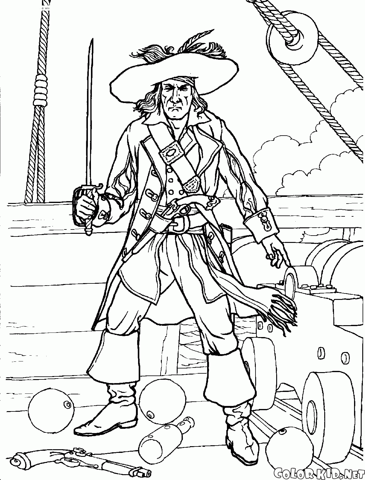 You can download and print out the coloring pages for kids Pirate in a battle from our website.