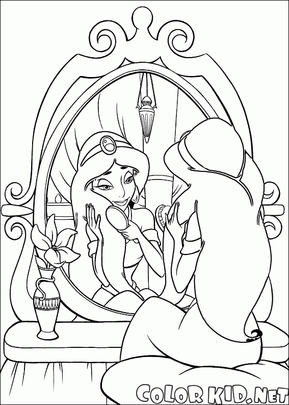 Coloring page - Princess Jasmine and a mirror