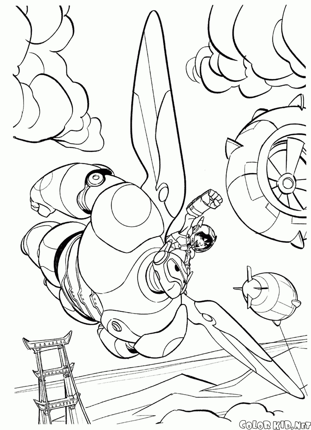 Coloring page - Hiro and Baymax save the city