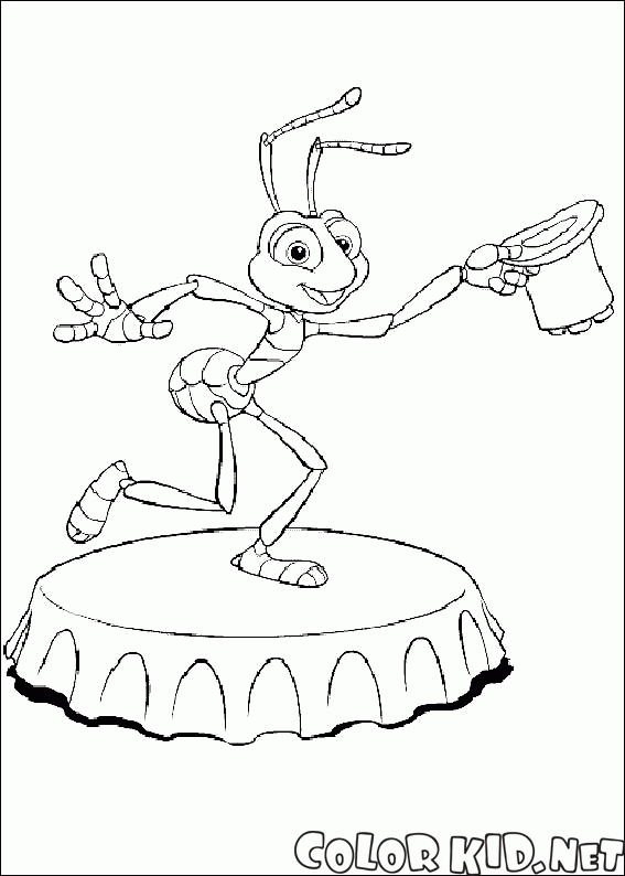 Our ant hero often likes to dance. Now he has climbed up on a bottle cork and bows politely, taking has hat off. Flick is smiling happily before starting the show.