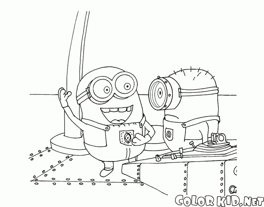 Minions are coming up with a smart engineering plan. They are standing on a riveted steel deck. Those little guys have a gleam in their eyes because of their creative inspiration.