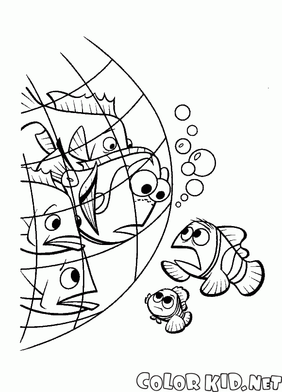 Dory was caught in the fish net right while Nemo was watching. Fishermen threw a net and caught all the larger fish. Those who are caught are very frightened, and those who stay in freedom empathize with their friends.