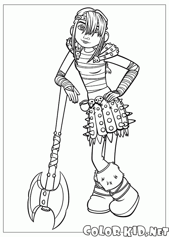 Astrid is constantly ready to compete with Hiccup. She likes viking warrior traditions. She has spiky leather armor and a big two-handed axe.