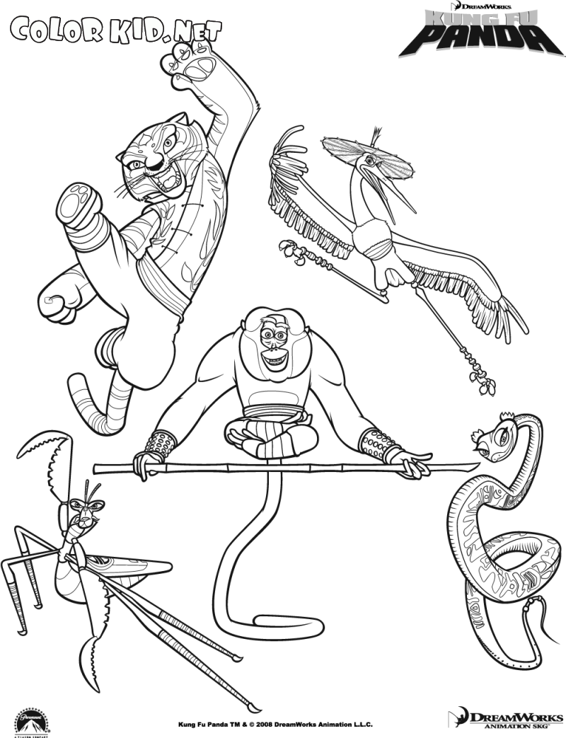 Best masters of the battle Kung Fu. Every animal of those five has a particular fighting style. The snake chokes and hits with a head, Monkey uses his staff, Crane can fly and peck, Tigress has powerful paws, and Mantis is quick and stealthy.