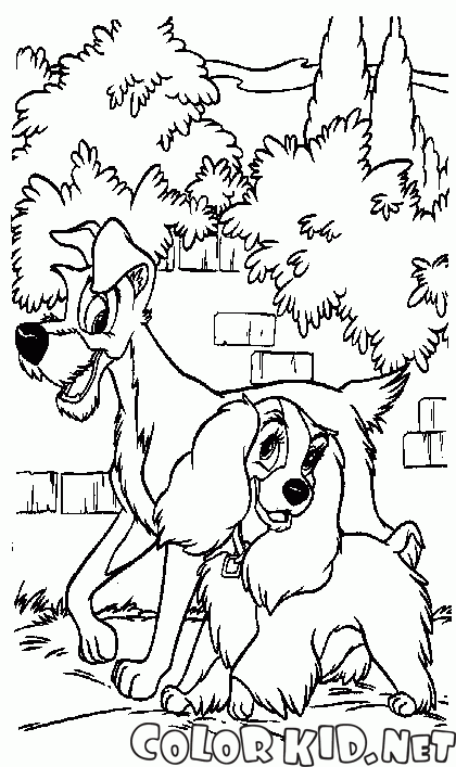 Coloring page - Lady and the Tramp take a walk