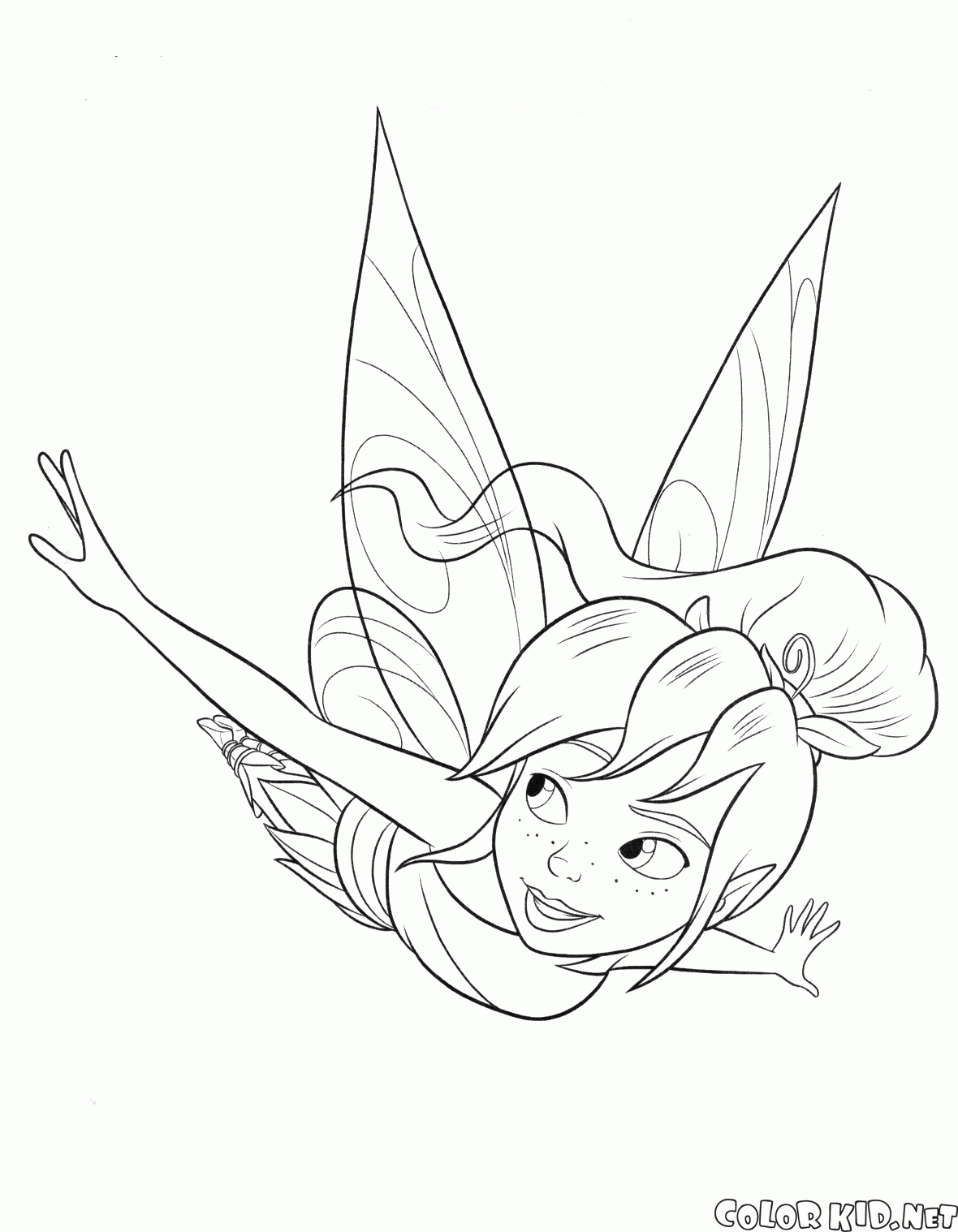 Fairy is floating in the beautiful space of Pixie Hollow. Everyone is safe in the Valley and it is possible to just enjoy the flight. Fairy is looking around cunningly.