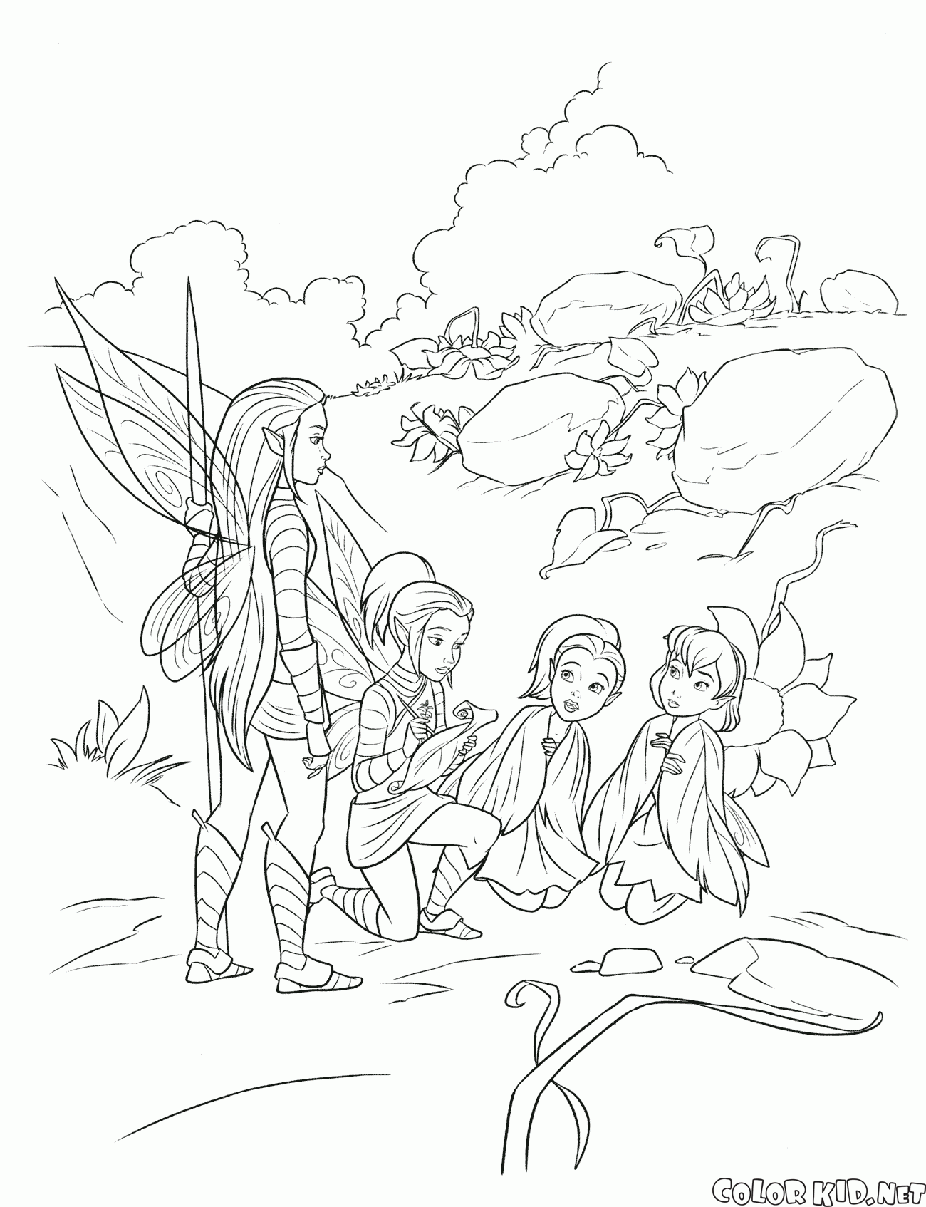 Nyx is looking for information fawn needs. Scout fairy is asking her friends on what do they know about the monster. Fawn is writing everything down.