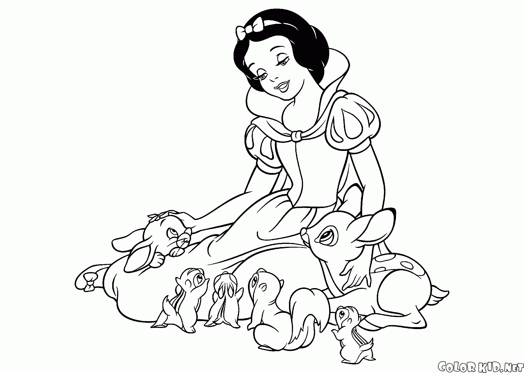 Coloring page - Snow White pets animals
