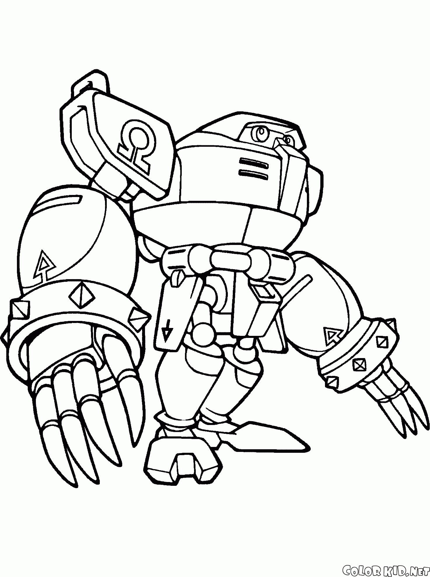 Omega was created by an evil genius doctor. The last of his series, he is a powerful battle robot. He is colored in black, red and yellow. Omega has a lot of different weapons, ranging from sharp claws to machine guns and rockets.