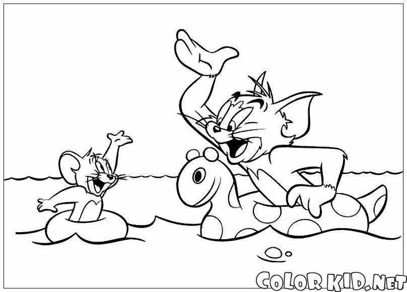 Coloring page - Tom and Jerry on the lake