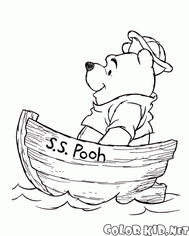 Coloring page - Winnie in a boat