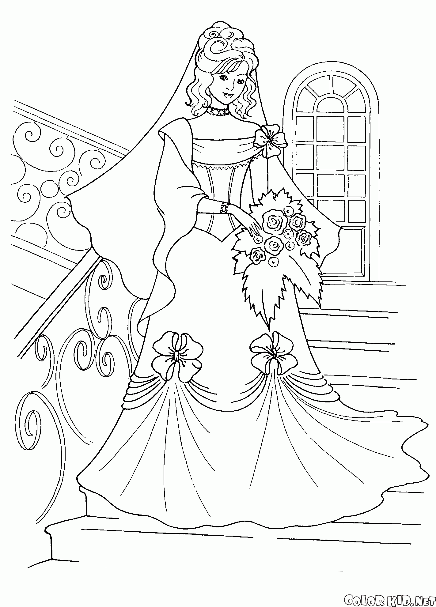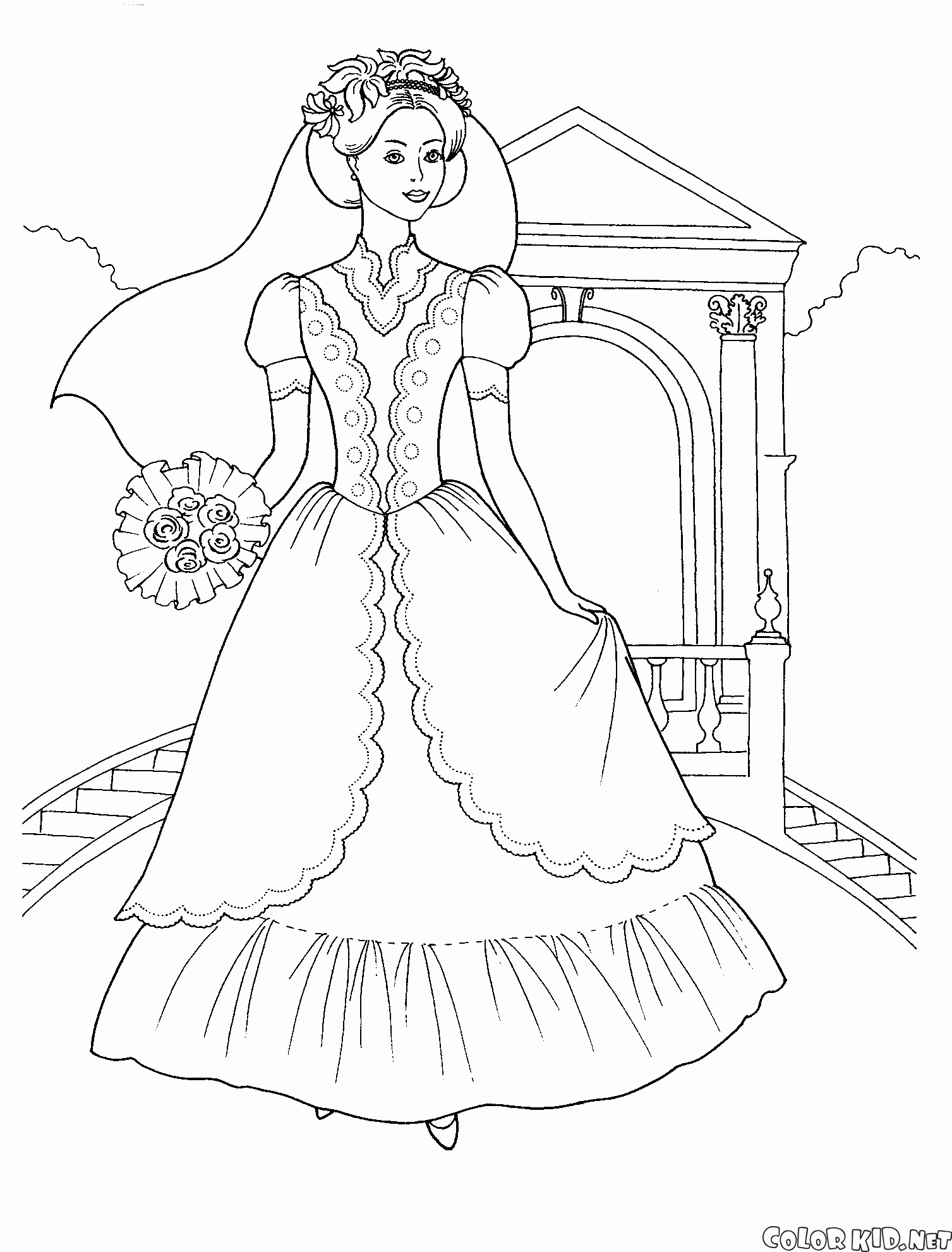 Coloring page - Brides long dress