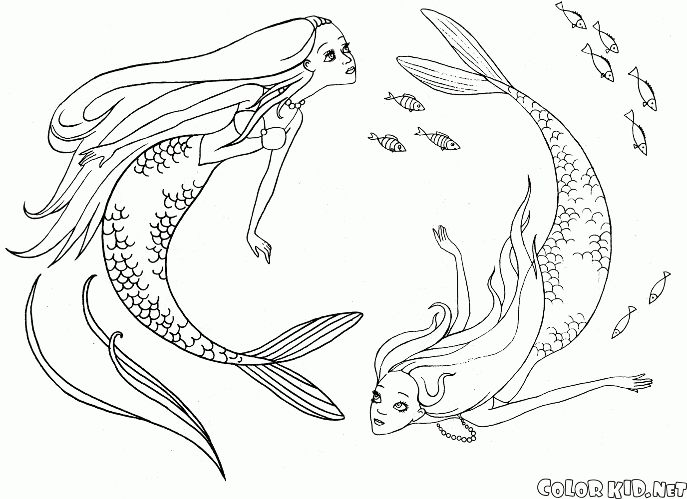 You can download and print out the coloring pages for kids Mermaids swimming from our website.