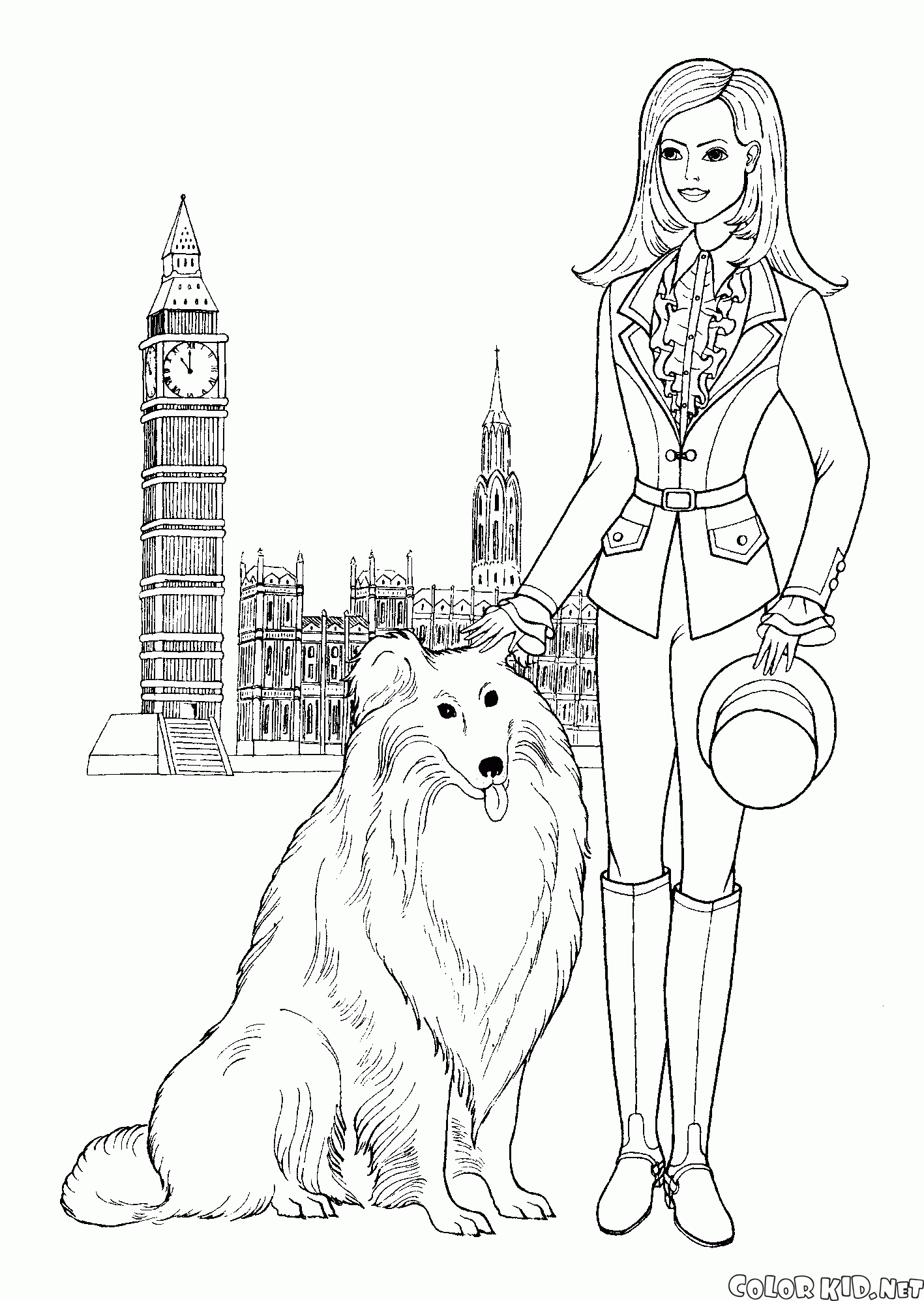 Coloring page - Girl in Paris