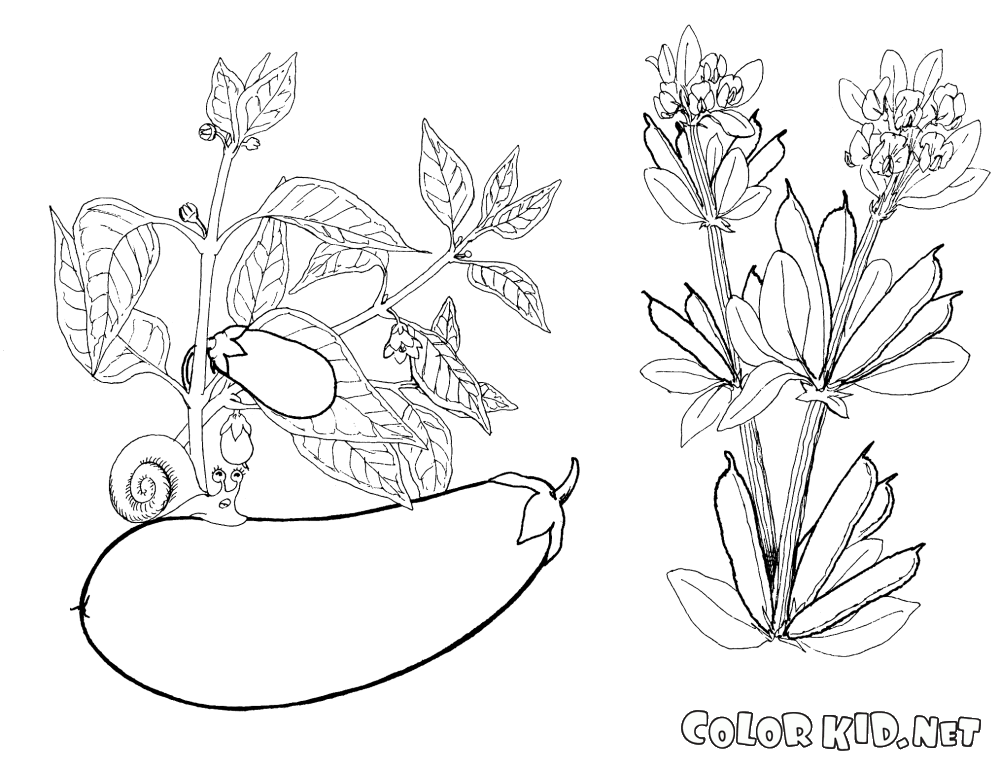 Coloring page - Eggplant and beans