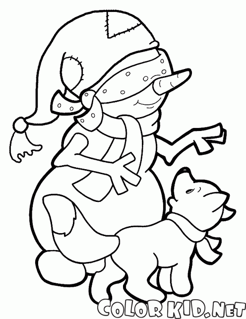Coloring page - Snowman and dog