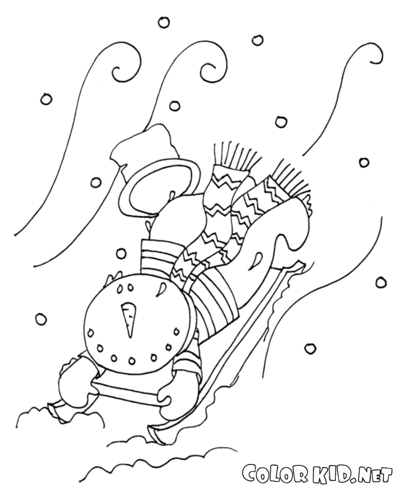 Coloring page - Snowman and sleigh