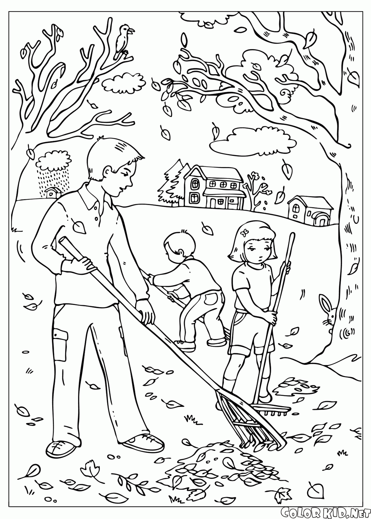 Coloring page - Cleaning leaves