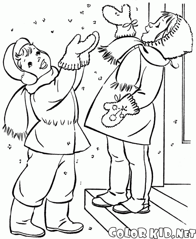 Coloring page - Children catching snowflakes