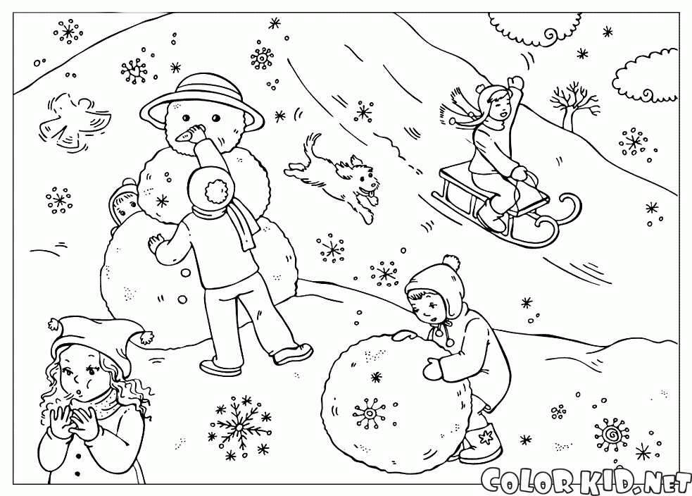 Coloring page - Children sledding