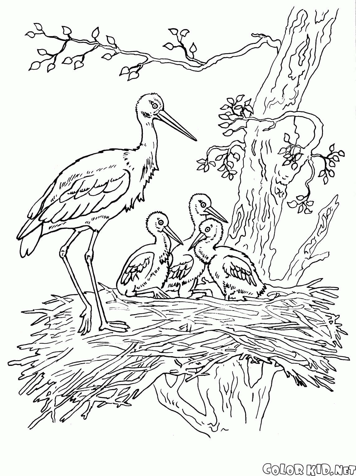 Coloring page - Storks and chicks