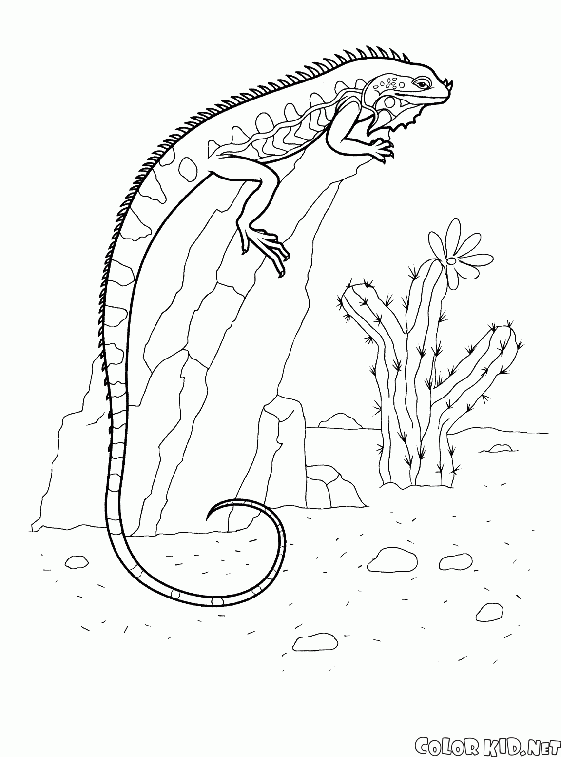 You can download and print out the coloring pages for kids Iguana on a rock from our website.